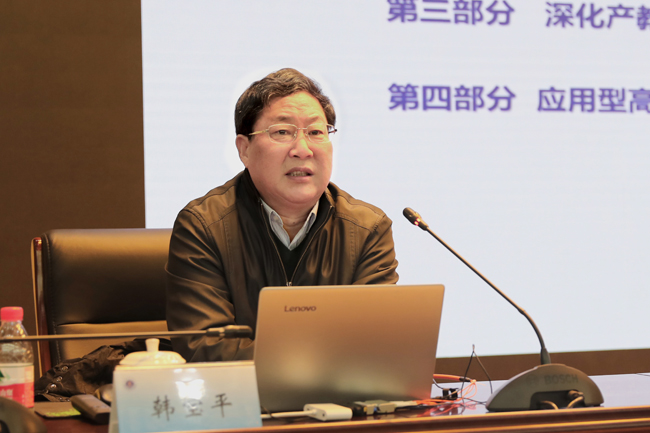 韩宝平教授开场就赞扬了学校抢抓机遇能力强。“十三五”期间是国家产教融合发展战略重要机遇期,学校再一次抓住了机遇,获得了“全国百所产教融合发展工程应用型高校”规划项目。韩教授特别强调,产教融合发展工程是“十三五”期间国家教育类“唯一”项目,并多次用了“不容易”来肯定学校的决策与发展。