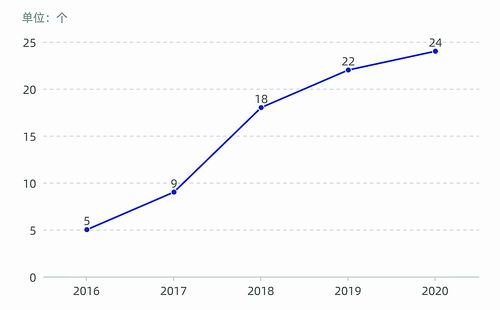 另据统计(详见图2),2017年高校人工智能相关实验室、研究所数量仅为9个,比2016年增加了4个,增长率达80%,当然其中不免有基数较小的缘故。但在2017至2018年间,高校人工智能相关实验室、研究所迎来爆发式增长,增长率约为100%,数量增长至18个;2019年和2020年以持续增长的态势继续发展,分别增长了4个和2个。
