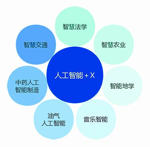 人工智能发展是渗透到各个领域的,包括农业、交通、医药、教育以及娱乐等多方面。通过对“双一流”建设高校的人工智能学科进行统计可以发现,“人工智能+X”的跨学科特点将是人工智能短期内的发展趋势,通过链接已有的学科内涵和人工智能,将其辐射到各个领域中去,从而打通学生学习和运用人工智能的经络(详见图6)。