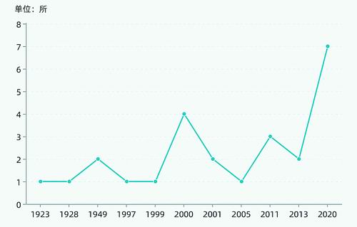 统计“双一流”建设高校公共卫生学院自1923年至今的新增数量,可以看出,高校新增公共卫生学院的波峰为2020年(详见图7),新增公共卫生学院7个。