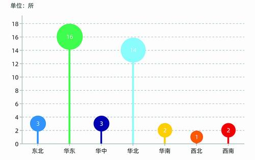 图3.“双一流”建设高校人工智能学院地域分布情况