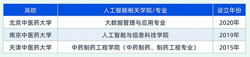 以“人工智能+医学”为例(详见表2),统计发现,开设此类专业的高校集中在中医药类大学。人工智能为学校和学院培育了新的学科增长点和特色方向——医学人工智能,为现代医学发展、健康医疗大数据提供了专业依托。