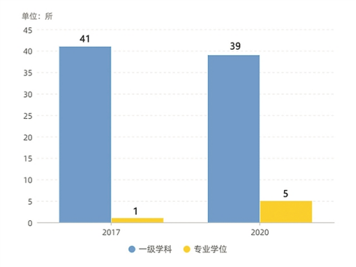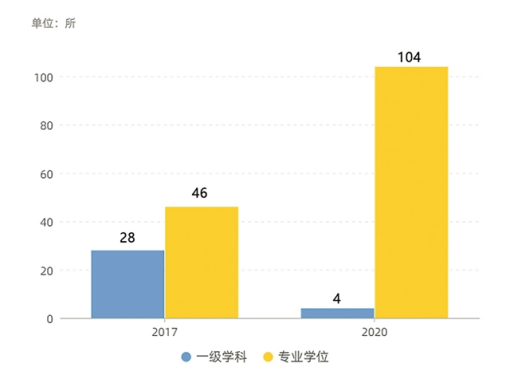 同时,专业学位建设得到明显增强。2017年新增博士一级学科41个、专业学位1个,硕士一级学科28个、专业学位46个;2020年新增博士一级学科39个、专业学位5个,硕士一级学科4个、专业学位104个。两次学位授权相比,硕士专业学位数量大幅上涨了126%。
