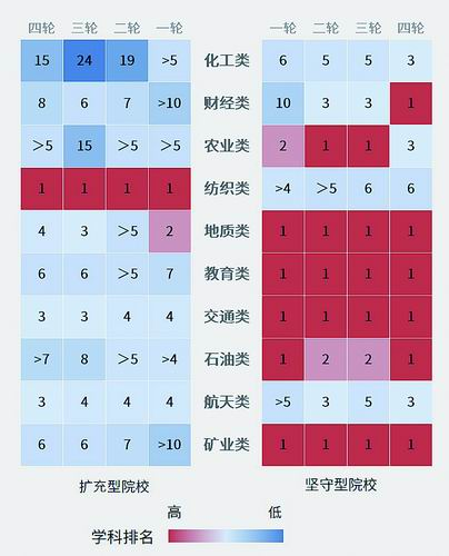 结果显示,坚守本行业特色的高校在学科评估中普遍名列前茅。这从侧面反映了综合化发展的道路上,经历扩张和转型的行业院校,其相关行业的学科建设相较于坚守型高校而言,显现出一定的滞后性。这说明了坚守行业特色对于提升学科实力的重要性。