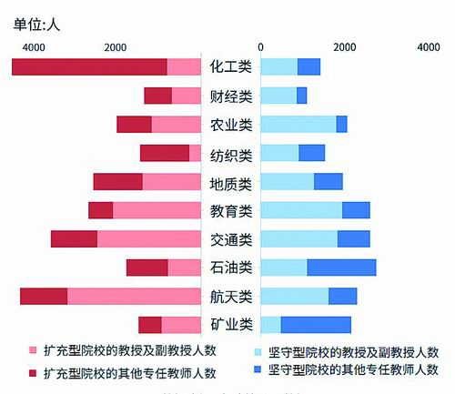 具体来看,在化工、航天、交通等科技含量较高的行业,扩充型大学在科研成果数量上占据明显优势。这些大学通过积极扩张,不断吸纳新鲜血液和创新力量,从而在科研产出上表现强劲,也反映出这些行业对于科技创新的高度重视。