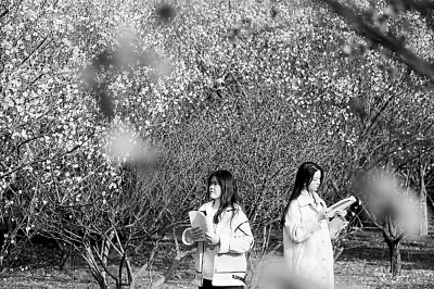 2022年3月3日,淮阴师范学院大学生在姹紫嫣红、芬芳四逸的校园里读书。赵启瑞摄/光明图片