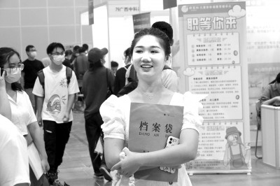 2021年9月,在广西南宁高校毕业生双选会上,毕业生寻找应聘岗位。喻湘泉摄/光明图片