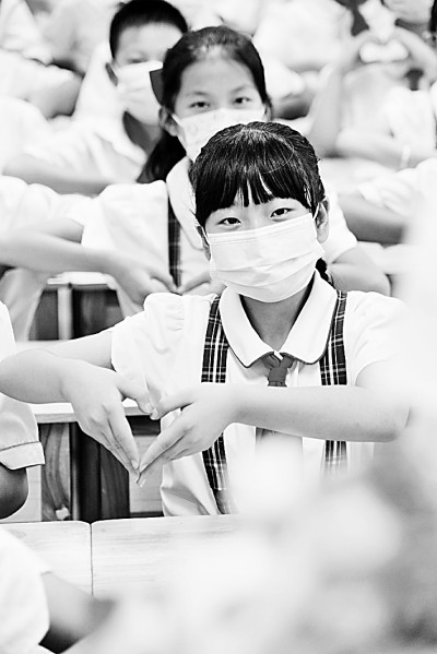 7月3日,安徽六安河西小学六年级的同学们表达对老师的感谢。田凯平摄/光明图片