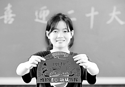 6月29日,河北邢台广宗县葫芦中学学生精心制作“同心庆七一 喜迎二十大”主题剪纸作品。王垒摄/光明图片
