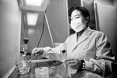 重庆市农科院研究员黄桃翠在油菜组培室进行实验。新华社发