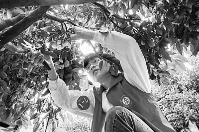 西南大学园艺园林学院的学生在进行果树修枝比赛。秦廷富摄/光明图片