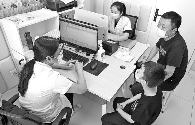 江苏省连云港市第一人民医院儿童保健中心学习困难门诊室,医生在给“学习困难症”小朋友进行问诊、检查和评估。耿玉和摄/光明图片