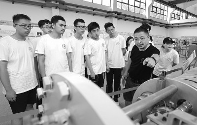 中国原子能科学研究院研究员在瑞昌核物理应用研究院向参加夏令营的学生介绍加速器。魏东升摄/光明图片