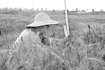 2021年6月11日,中国农大河北省鸡泽县综合试验站小麦试验田中,师生们在田间采集数据。金书怀摄/光明图片