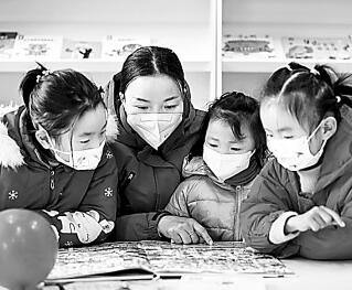 湖北省咸宁市通城县隽水镇油坊村小巧绘本馆,孩子们在阅读绘本。刘建平摄/光明图片