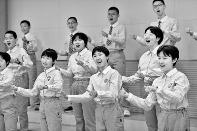 5月23日,在济南市历城二中闻韶艺术馆,同学们在练习合唱曲目。新华社发