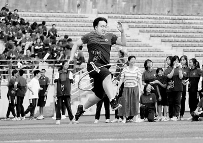 5月14日,在重庆市北碚区朝阳中学,高三学生参加“螃蟹赛跑”趣味游戏。新华社发