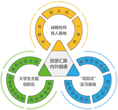 二是依托教师长期科研合作的科技型企业,建设基于企业科研课题的“项目式”实习基地。以项目为纽带,在科技型企业建设135个“项目式”实习基地,建立校企双导师制度,开展“企业出题—导师点题—学生解题”的“项目式”实习。企业根据技术研发和生产管理中的真实问题提出研究课题清单,学生选择实习项目后,深入参与企业生产和研发过程,以工程项目为案例开展创新实践,真刀真枪解决工程实际问题,学生真实习,企业真受益。将企业实际课题转化为学生实习内容,企业项目管理模式转化为团队实习模式,切实提高实习成效,实现了实践应用与理论知识的融合、人才培养与企业发展的融合、产教研一体化的融合。
