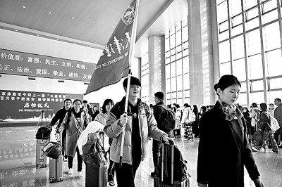 2023年12月4日,京津冀学子同上一堂“大思政课”暨“百万学子回延安 延安精神进校园”活动启动仪式在天津火车站举行。来自北京师范大学、南开大学、河北工业大学等13所高校的约300名师生,赴延安开展为期一周的红色研学实践活动。新华社发
